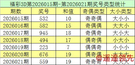 福彩3D第2026021期回顾:奖号为559,奖号奇偶比为3:0,大小比为3:0,和值为19,类型为组三。